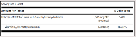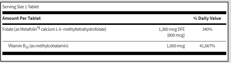 | Folate (as Metafolin®‡ calcium L-5- methyltetrahydrofolate) | 1,360 mcg DFE (800 mcg) |