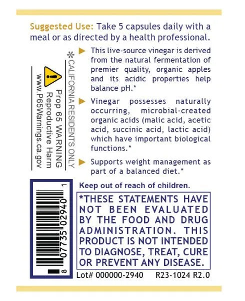 Premier ACV offers pristine, organically cultured Apple Cider Vinegar (ACV) created with our signature probiotic-cultured technology. It delivers the outstanding benefits of low temperature, air-dried apple cider vinegar, wrapped up into a convenient capsule form. This ancient folk elixir has graduated from the kitchen to the nutrition cabinet as science has demonstrated its wide-reaching effectiveness in many areas of overall beneficial support.*