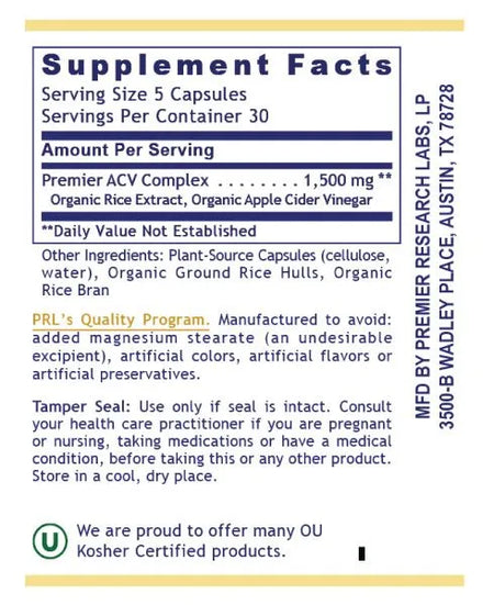 Apple Cider Vinegar Premier 150 capsules Premier Research Labs