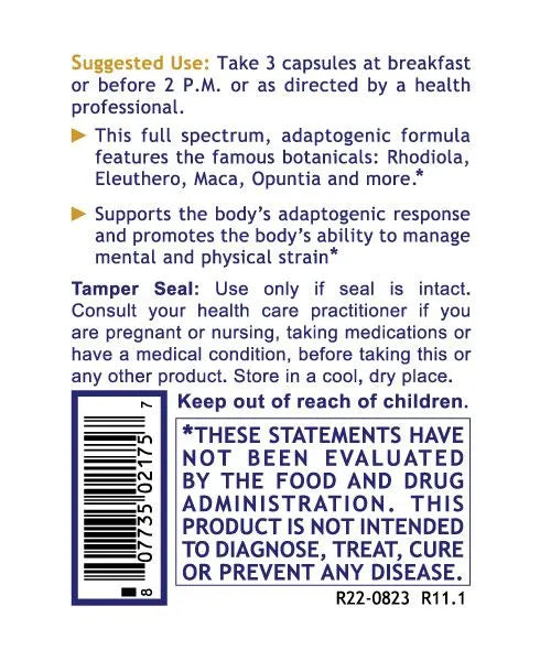 We recommend taking 3 capsules daily. This is a great product for your super busy, type A personality client or simply the person who wants quality support for occasional stress.* Because of its versatile effects, Adaptogen-R3™ is one of our top 10 products and a client favorite. Now you can start the day with gusto and full botanical support - Adaptogen-R3™! With a new class of premier quality nutritional products that offer you the ultimate in adaptogenic nutrient technology. True revitalization must occur from the inside out. We highly recommend adding Adaptogen-R3™ to your daily supplement foundational regimen.
