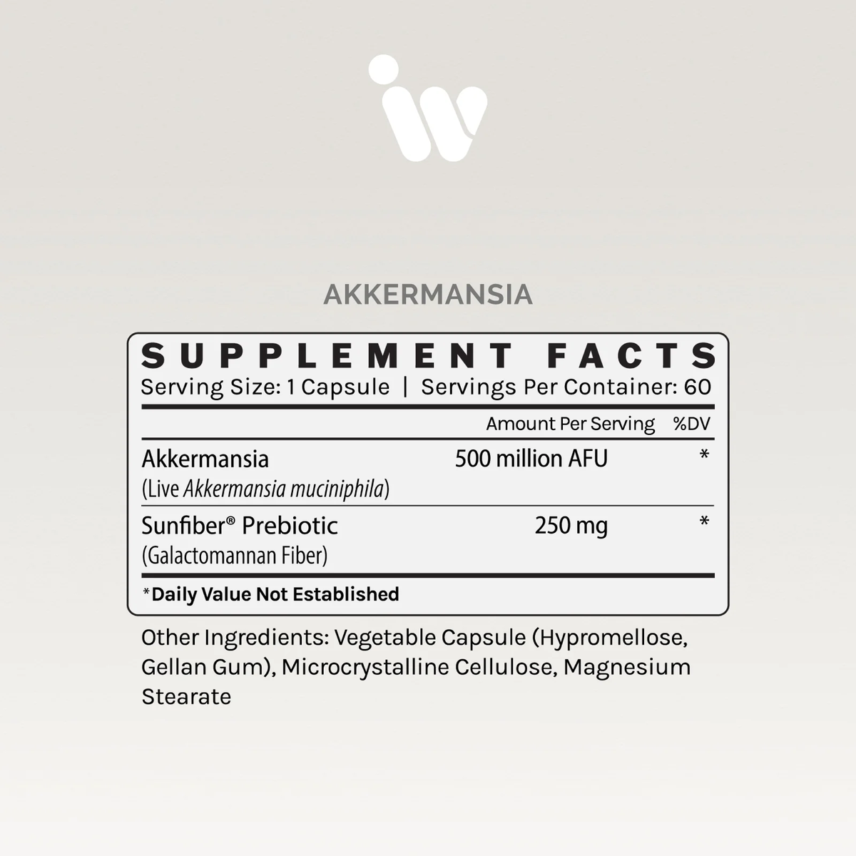 Akkermansia from InfiniWell is a premium dietary supplement featuring live Akkermansia muciniphila combined with Sunfiber® prebiotic (galactomannan fiber). This specialized formula is designed to enhance gut lining integrity, metabolic efficiency, and overall digestive wellness.