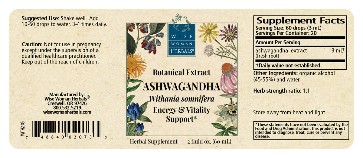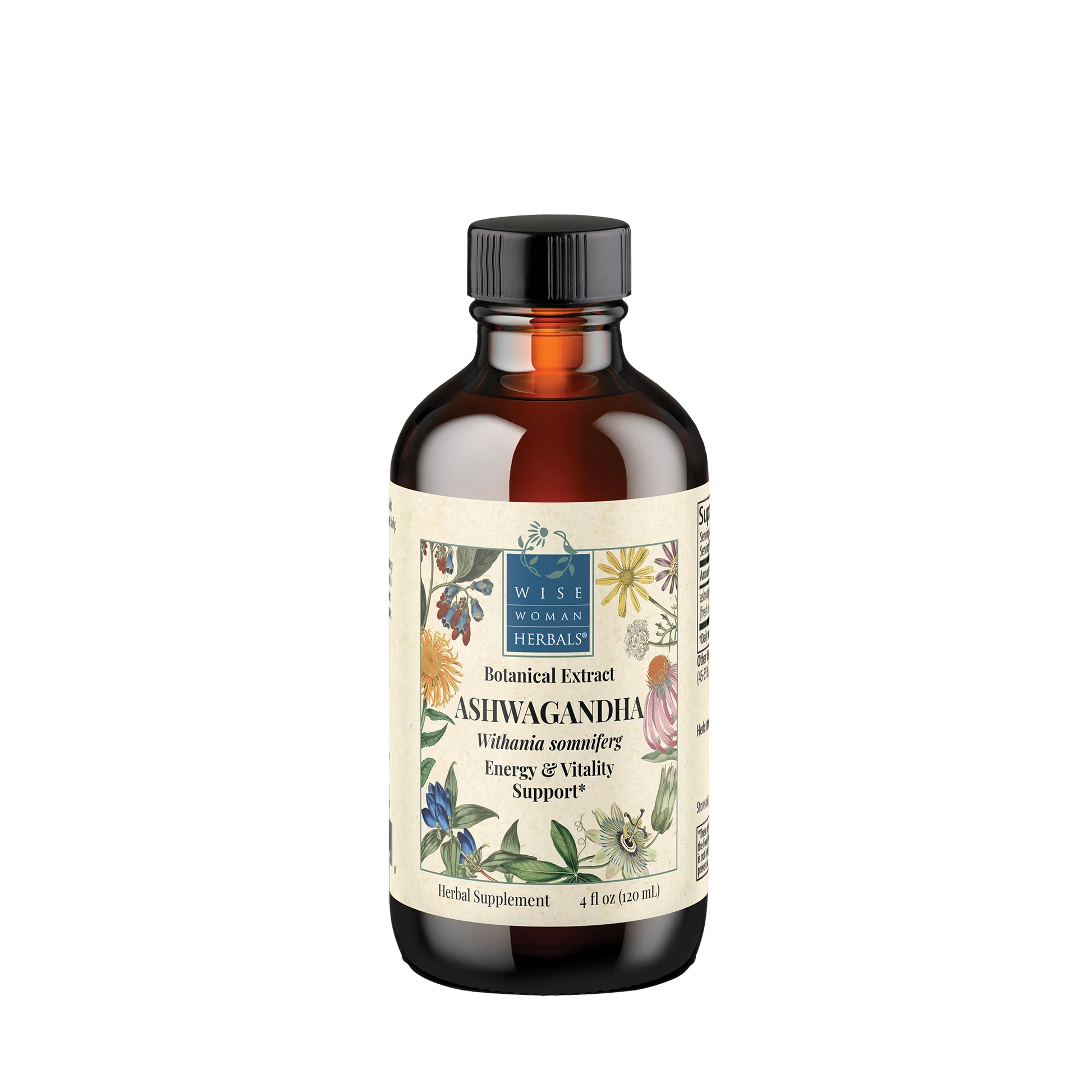 Wise Woman Herbals® Ashwagandha Extract offers a traditional botanical tonic made from fresh Withania somnifera root. Revered for centuries in Ayurvedic practice, Ashwagandha is known as a grounding adaptogen that promotes resilience, calm focus, and balanced vitality.*