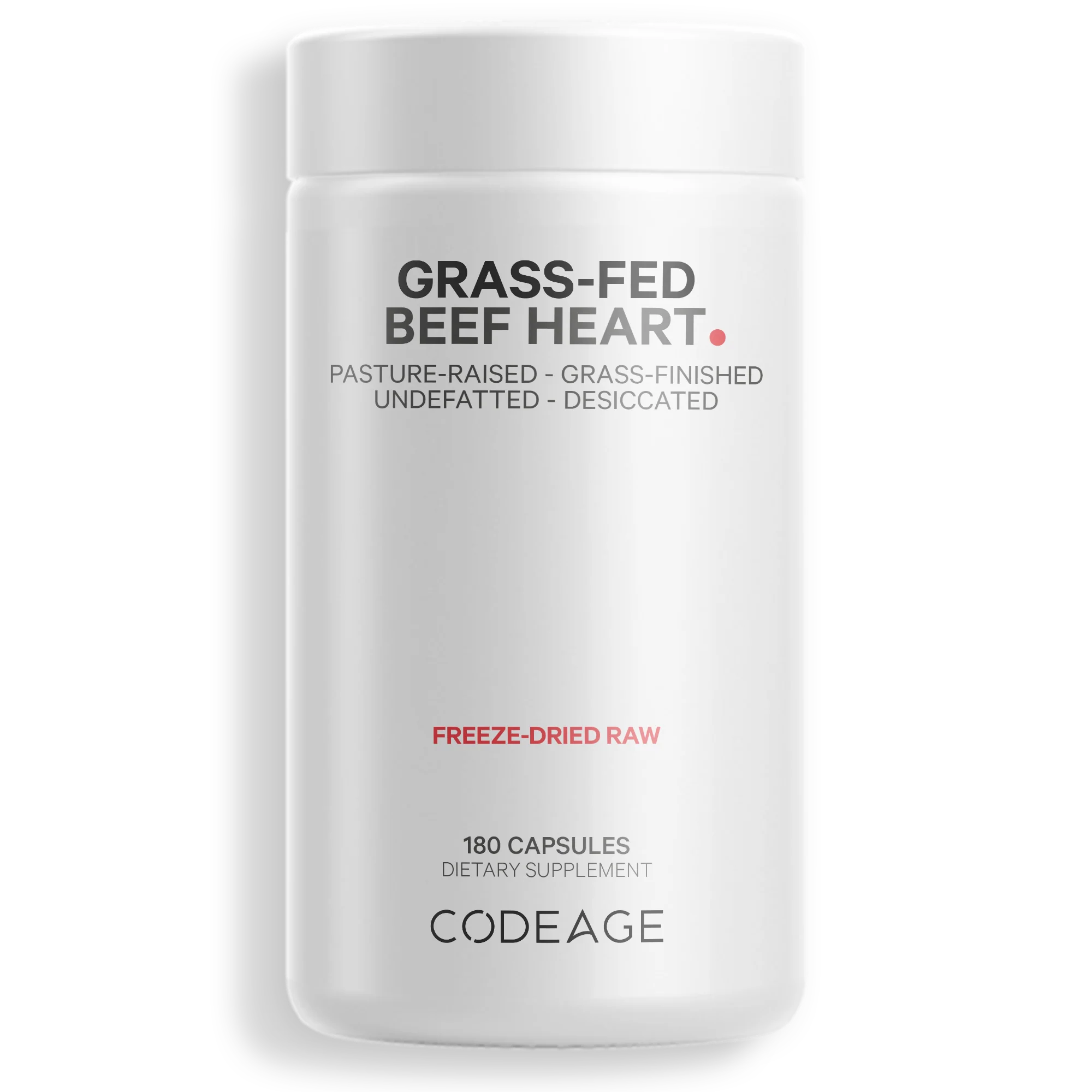 - Codeage Grass-Fed Beef Heart supplement contains both beef heart and beef liver, sourced from pasture-raised, grass-fed, and grass-finished cattle. This formula combines these two organs for a convenient, all-in-one approach.