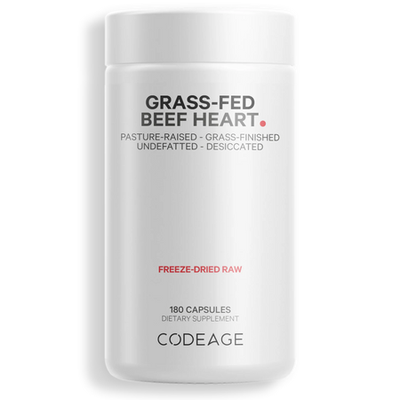 Codeage Grass-Fed Beef Heart supplement is crafted from grass-fed, grass-finished, pasture-raised beef heart and liver. This supplement is freeze-dried, non-defatted, and desiccated. Each bottle provides a 2-month supply.