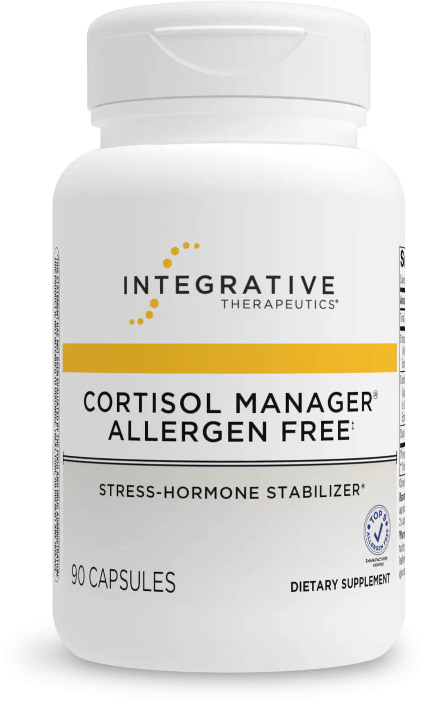 The ingredients in Cortisol Manager Allergen Free support healthy cortisol levels.* Cortisol is one of the most important hormones involved in the adaptation process. By supporting balanced cortisol and a healthy stress response, Cortisol Manager Allergen Free also promotes relaxation to support restful sleep.*