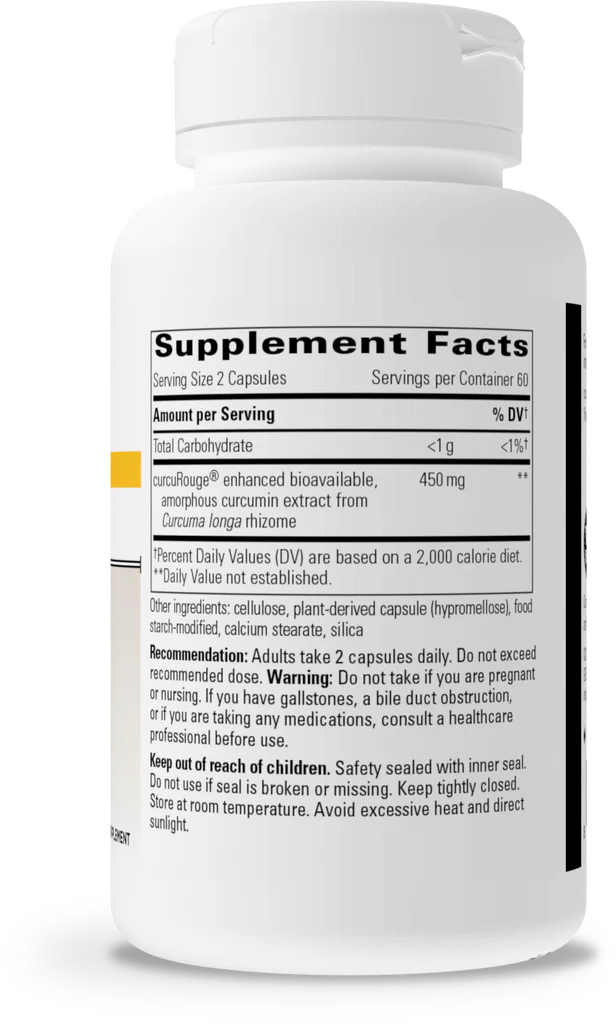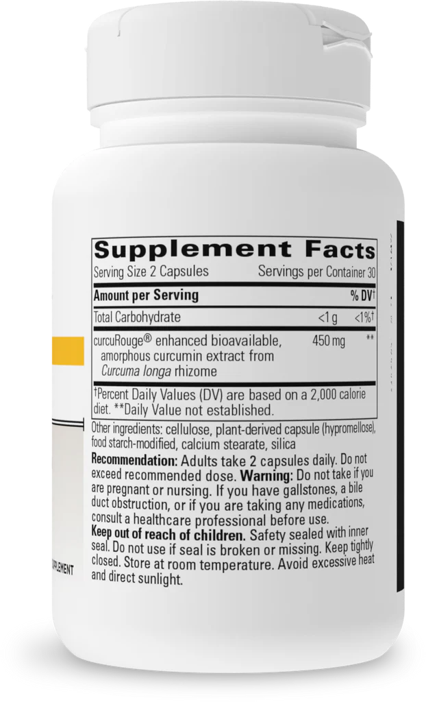 Integrative Therapeutics Curalieve provides advanced absorption curcumin due to its amorphous structure and excipient profile, which contributes to enhanced dispersibility and bioavailability. Curcumin has been studied and evaluated for its role in supporting antioxidant pathways and its effects on the body.1,2 Curalieve’s key ingredient is curcuRouge®, an amorphous solid dispersion of curcumin.