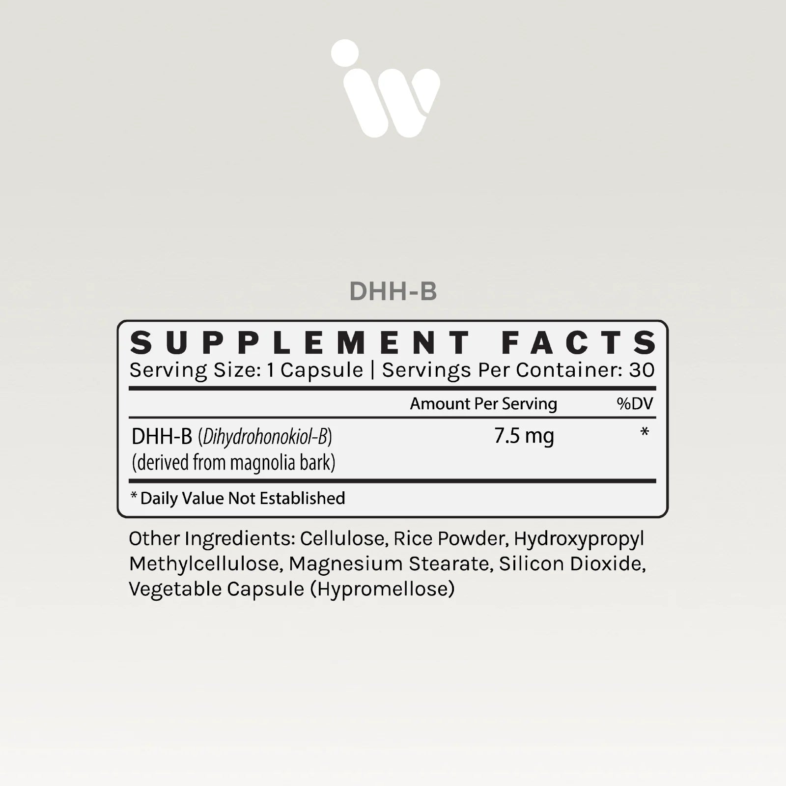 DHH-B (Dihydrohonokiol-B) is a concentrated extract derived from the bark of Magnolia officinalis, a plant long used in traditional Chinese medicine. With approximately 20x the potency of standard magnolia extract, DHH-B is formulated to promote calm, relaxation, and healthy sleep cycles. It helps maintain balanced neurotransmitter activity, supports antioxidant defenses, and encourages overall brain health.