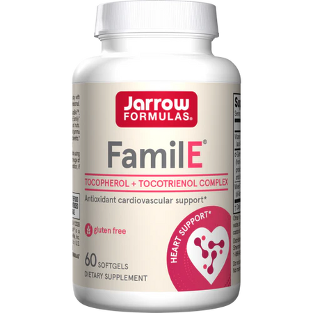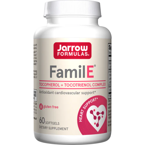 Jarrow Formulas® FamilE® contains Tocomin® SupraBio™, which includes all 8 compounds of the “vitamin E family” typically found in plant seeds, vegetable oils, and nuts. Our unique formula also contains a higher level of gamma tocopherol, which provides distinctive antioxidant benefits.* FamilE® helps to support cardiovascular function.