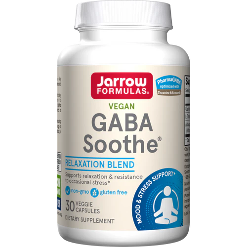 Jarrow Formulas® GABA Soothe® includes clinically studied ingredients that support resistance to occasional stress (Ashwagandha extract) and alpha brain wave formation (GABA and Theanine), which is associated with relaxation.