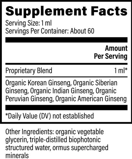 | Proprietary Organic Ginseng Blend | 1 ml |