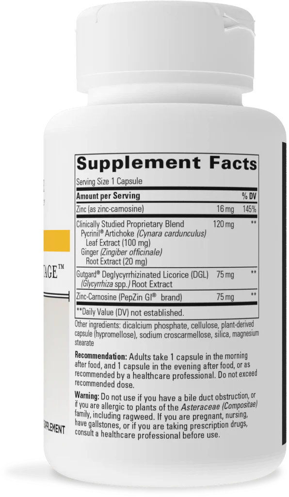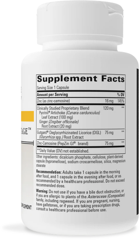 Do not use if you have a bile duct obstruction, or if you are allergic to plants of the Asteraceae (Compositae) family, including ragweed. If you are pregnant, nursing, have gallstones, or if you are taking prescription drugs, consult a healthcare professional before use. Keep out of reach of children. Safety sealed with inner seal. Do not use if seal is broken or missing. Keep tightly closed. Store at room temperature. Avoid excessive heat and direct sunlight.| Ingredients | Amount Per Serving | % Daily Value |