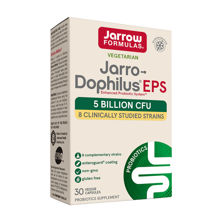 - Our 8 complementary strains of probiotic bacteria are delivered via proprietary enteric coated capsules (EnteroGuard®) that protect it from stomach acid and delivers the potency of friendly bacteria needed to support a healthy gut.* Jarro-Dophilus® EPS is blister-packed to protect the capsules from moisture and room temperature stable so it does not require refrigeration