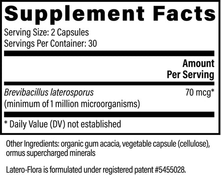 1 Million Microorganisms, One Purpose. Unlike conventional probiotics that rely on generic strains, Latero-Flora® contains a professional-grade Brevibacillus laterosporus (BOD strain) that delivers one million spore-bearing bacteria per serving. These soil-based organisms naturally survive stomach acid, ensuring potency and efficacy where it matters most — in the gut.