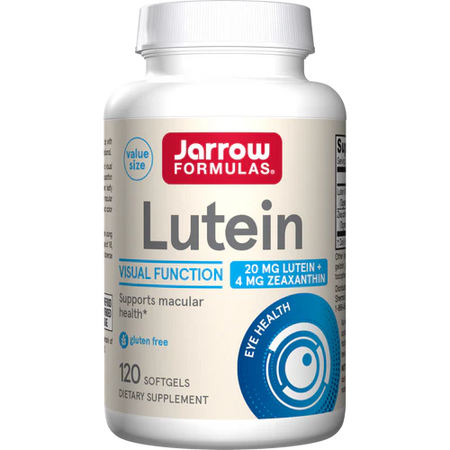 Jarrow Formulas® Lutein supports eye health and visual function with lutein and zeaxanthin.* Lutein and zeaxanthin are natural antioxidant carotenoids found in dark green, leafy vegetables, and are important components of the macular pigment in the eye, which is responsible for focus and color differentiation.