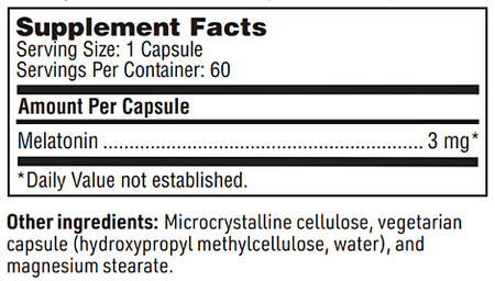 Melatonin 3mg 60 capsules Klaire Labs / SFI Health