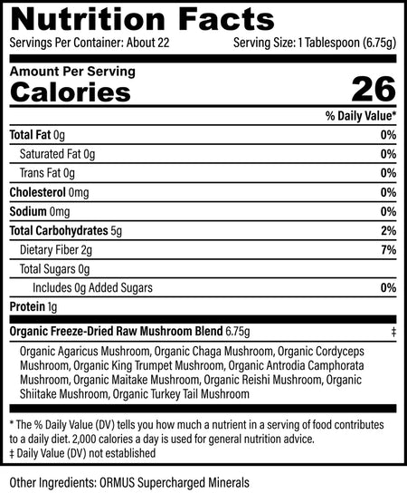 | Organic Freeze-Dried Raw Mushroom Blend | 6.75 g |