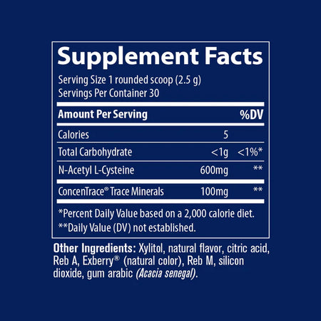 NAC (N-Acetyl L-Cysteine) by Trace Minerals Research is a highly bioavailable form of the amino acid cysteine, a key precursor to glutathione — one of the body’s most powerful antioxidants. This delicious watermelon-flavored powder supports immune health, respiratory function, and natural detoxification. Enhanced with ConcenTrace® Trace Minerals to promote optimal absorption and overall balance.