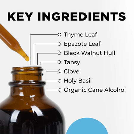 Proprietary Blend (Thyme Leaf, Sage Leaf, Tansy (Stem, Leaf, and Flower), Epazote Leaf, Black Walnut Hull, Holy Basil Leaf, Clove Bud) 0.52 mL*
