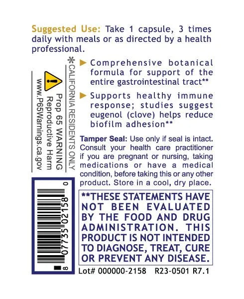 ParatosinTM is a comprehensive botanical blend for support of the entire gastrointestinal tract.* This formula also supports healthy immune response and reduction of biofilm adhesion.*