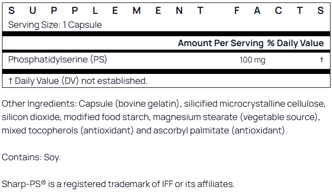 - 100 mg Phosphatidylserine (PS) Per Capsule