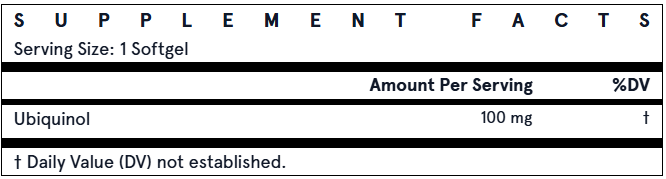 - 100 mg Ubiquinol Per Serving. Also Available in 200 mg