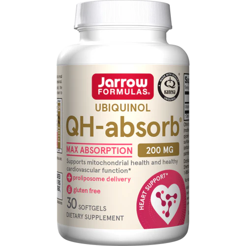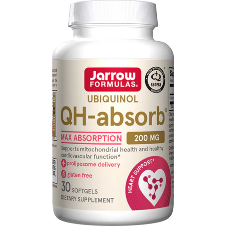 Jarrow Formulas® QH-absorb® features Ubiquinol, the active antioxidant form of Co-Q10 that has been shown to be better absorbed.* Co-Q10 promotes mitochondrial health, cellular energy production, and healthy cardiovascular function.* QH-absorb® has been clinically shown to increase Co-Q10 levels over baseline.