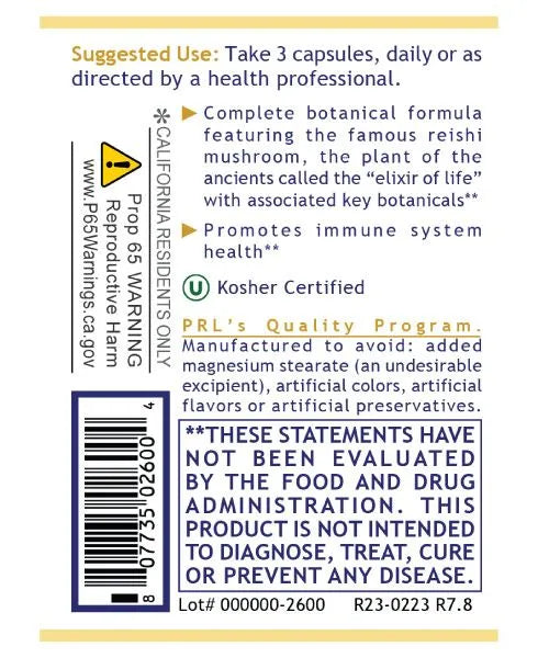 Reishi Immune™ is a complete biocompatible formula that features Reishi ProBlend™ which includes premier quality reishi (raw concentrate, fruiting body), the famous plant of the ancients for super health, called the “elixir of life”.* Reishi Immune Blend™ supplies a broad spectrum of biocompatible botanical agents which offers a complex phytochemical profile for additional nutritional support.*