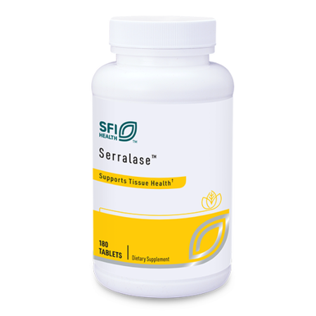 Serralase™ provides powerful, vegetarian proteases for use as a systemic enzyme formulation to support tissue repair and maintenance.† Proteolytic enzymes activate cells mediating tissue repair and break down cellular debris associated with inflammation metabolism, thereby supporting healthy vascular permeability, modulating tissue restorative processes, and speeding repair.† Serratia peptidase (Peptizyme SP®‡), a highly active and specific endopeptidase, is widely used to assist recovery after surgery or trauma, support joint function, and assist the respiratory system in breaking down and clearing mucus.† Serratia peptidase also helps protect sensitive gastrointestinal tissue from irritation that can affect tissue health and intestinal comfort.† Research shows Serratia peptidase breaks down biofilm and favorably modulates the immune response.† Highly purified, stable Serratia peptidase cultured from a bacterial source is used. Bromelain (from pineapple) and papain (from papaya) broaden the proteolytic actions as each enzyme acts at different points on protein molecules. Catalase (bacterial source), a ubiquitous body enzyme, renders hydrogen peroxide harmless. Enteric coating protects enzyme activity against degradation by stomach acid.