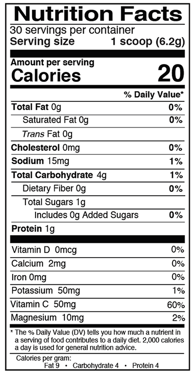 Mix 1scoop (6.2g) thoroughly with 4-6 oz of water. For best results, drink immediately after mixing. Store in cool, dry place. Consume within 45 days of opening.