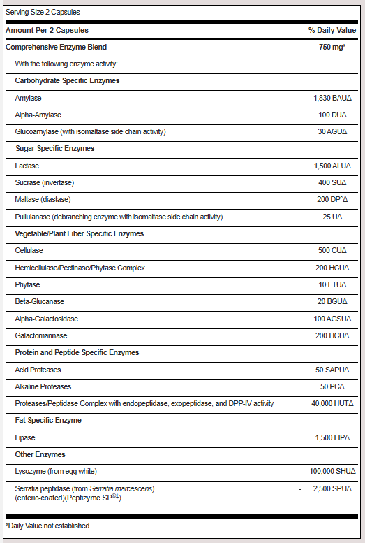 | Comprehensive Enzyme Blend | 750 mg* | |