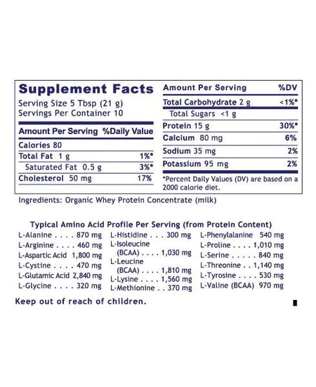 - Power-packed, full bodied organic whey protein with a broad spectrum of naturally occurring amino acids