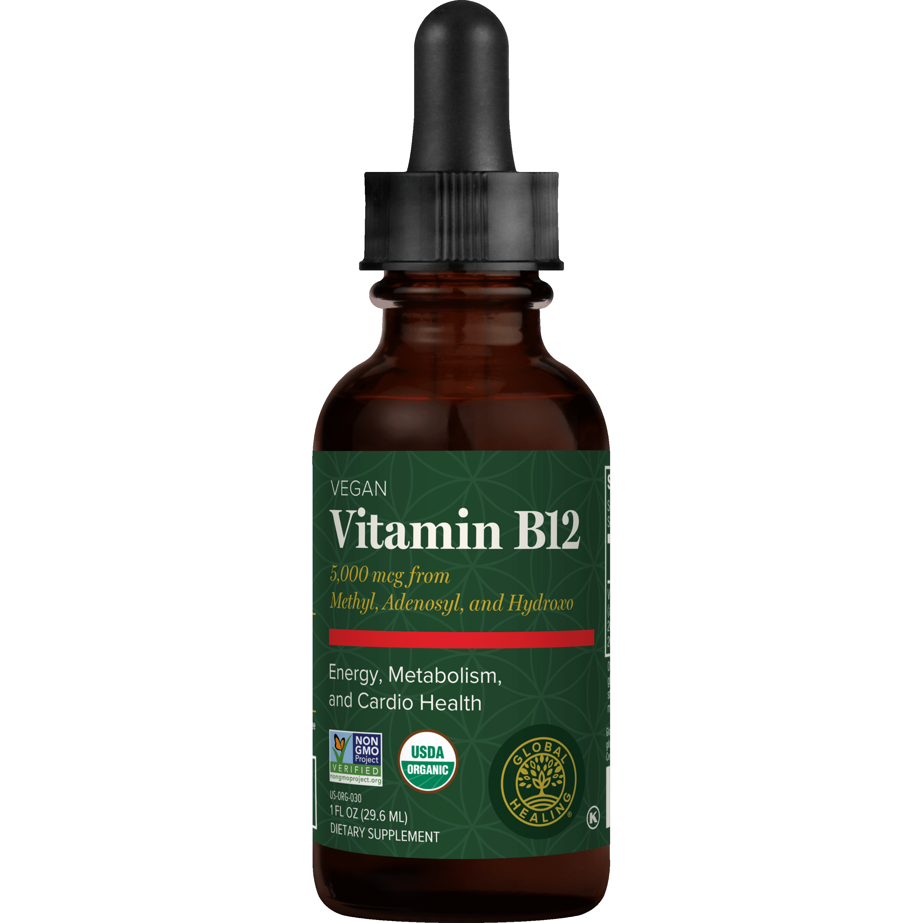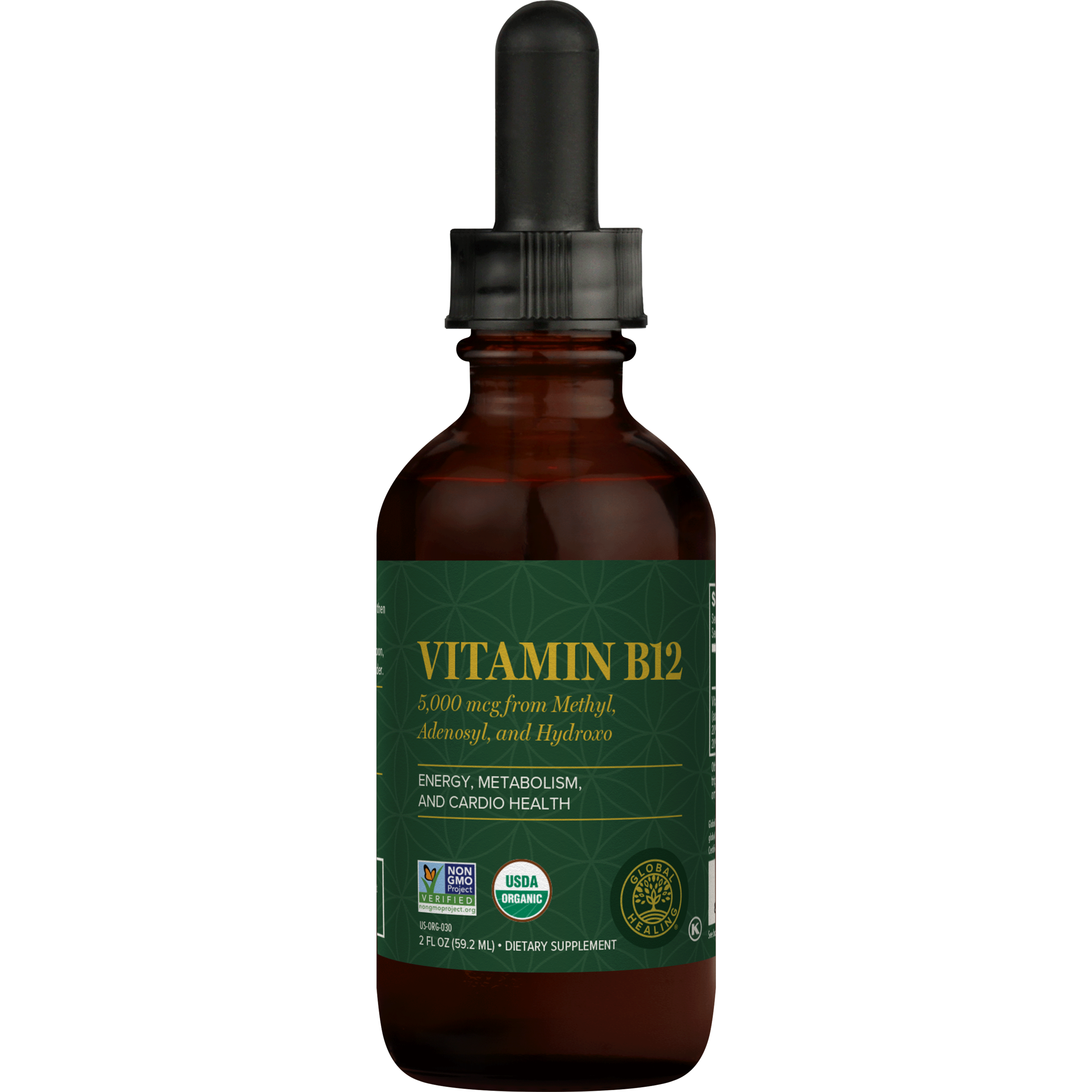 Liquid formula delivering 5,000 µg of three bioactive forms of vitamin B12 — methylcobalamin, adenosylcobalamin, and hydroxocobalamin — for maximum absorption and sustained benefit. Crafted with organically grown, plant-based ingredients in a vegan-friendly blend, this high-potency supplement supports daily vitality and cellular health.