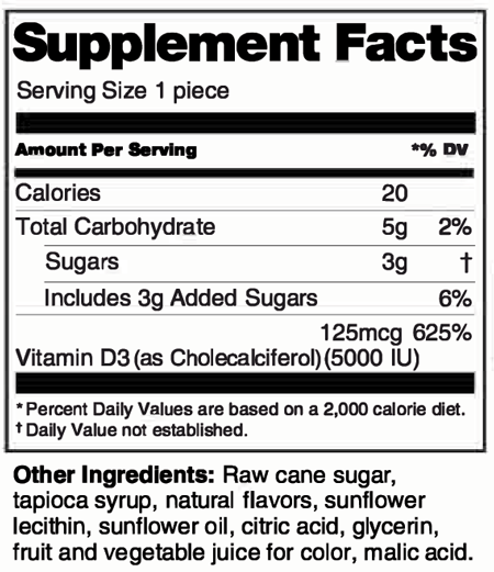 Just one chew a day gives you our highest potency 5,000 IUs of Vitamin D3.