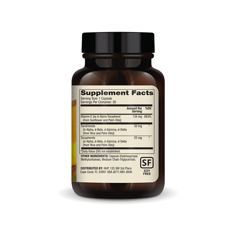 Tocotrienols have a molecular structure that is slightly different from tocopherols, allowing them to cover more of the surface area of your cells’ membranes and to do it more quickly, making them potentially more effective as antioxidants.* Together, tocotrienols and tocopherols provide you with a balanced spectrum of powerful vitamin E antioxidant nutrients.